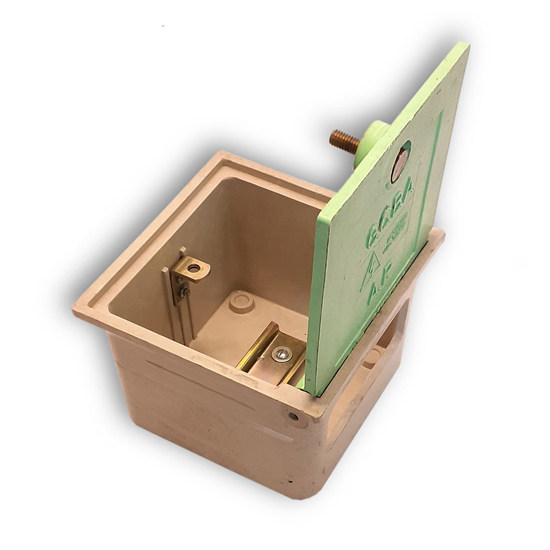 La caja PAT, es de fundición gris de 15 x 15 cm. La caja de pared puede ser metálica o plástica según requerimientos.